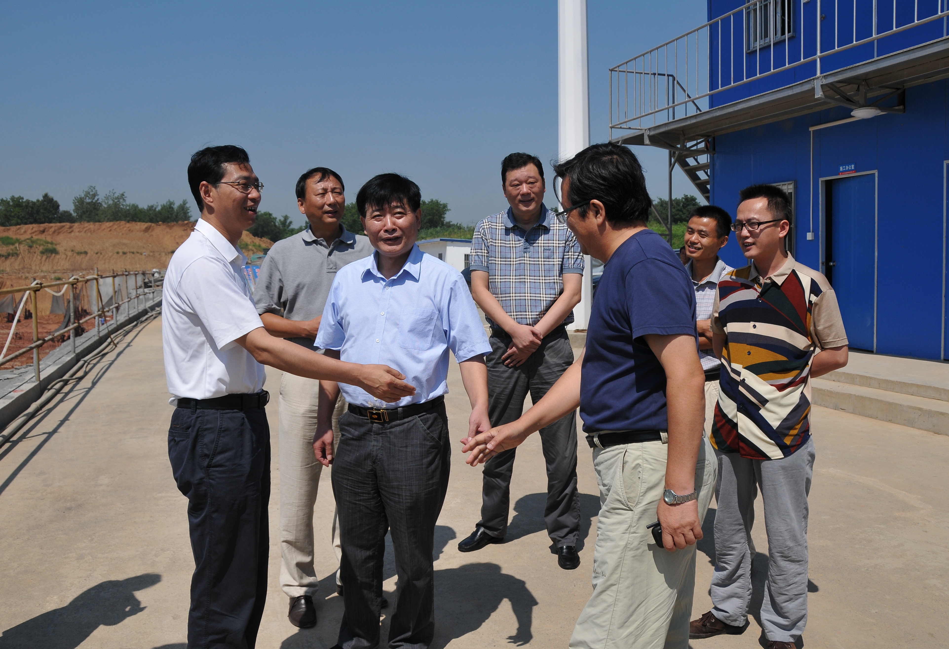 8月7日上午,市交通產(chǎn)業(yè)集團(tuán)新任董事長、總經(jīng)理、黨委書記周正權(quán),副總經(jīng)理王寧生、王進(jìn)一行,頂著烈日,冒著高溫,來到揚(yáng)州西部交通客運(yùn)樞紐建設(shè)工地,慰問堅(jiān)守在一線的工程建設(shè)者,并送上飲料和慰問金。集團(tuán)公司總經(jīng)理、黨委書記吳忠俊匯報(bào)了工程建設(shè)進(jìn)展情況。