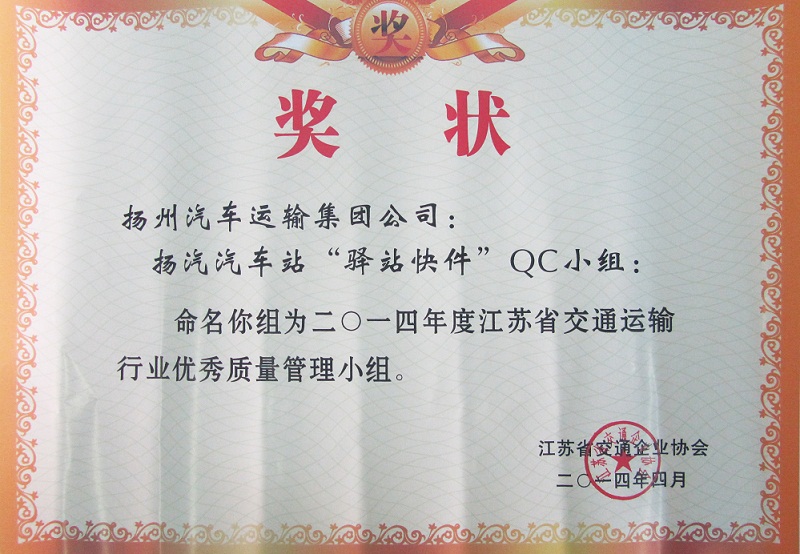 又訊:在此前進(jìn)行的江蘇省交通運(yùn)輸行業(yè)優(yōu)秀QC小組成果評(píng)選中,集團(tuán)公司被表彰為“省交通運(yùn)輸行業(yè)質(zhì)量管理小組活動(dòng)優(yōu)秀企業(yè)”,揚(yáng)州汽車(chē)站“驛站快件”QC小組(成果《降低到達(dá)庫(kù)收發(fā)貨的誤差率》)與修理廠“技術(shù)攻關(guān)”QC小組(成果《汽車(chē)變速箱小車(chē)式托架的研制》)被評(píng)為“省交通運(yùn)輸行業(yè)優(yōu)秀質(zhì)量管理小組”。