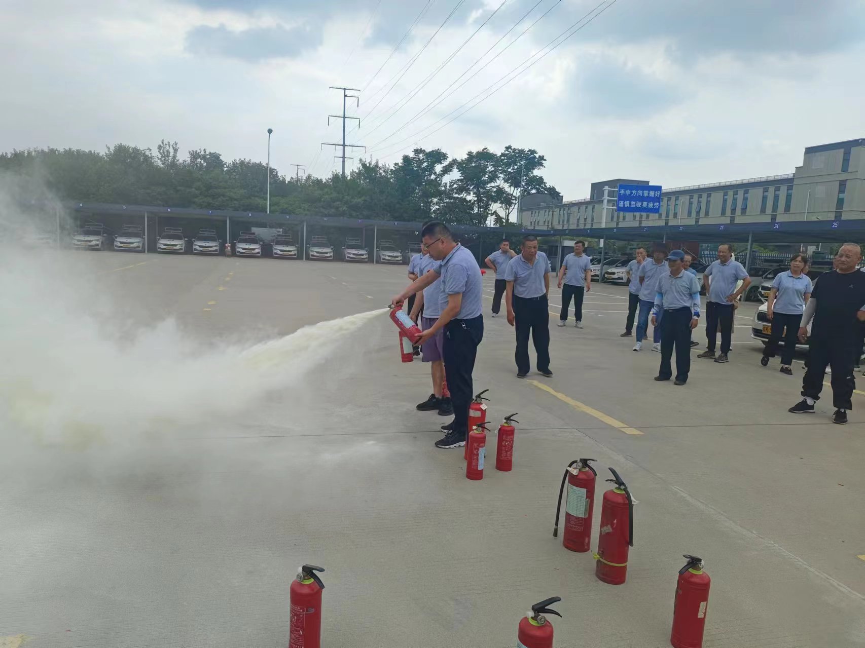 為進(jìn)一步加強(qiáng)安全生產(chǎn)意識(shí),有效提升火災(zāi)等突發(fā)事件的應(yīng)急處置能力,6月26日中午,揚(yáng)汽駕校分別在總部和科目三考場開展逃生暨綜合消防應(yīng)急演練。